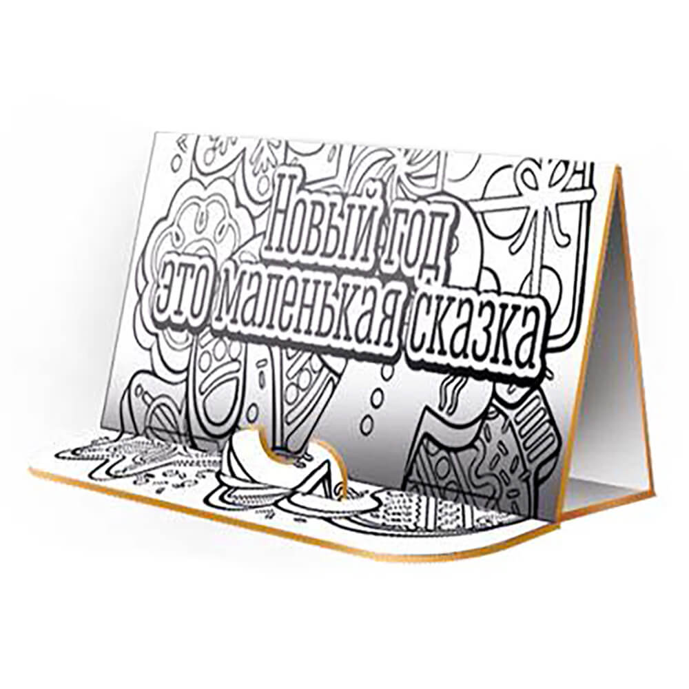 Коробка сундучок со сказочным новогодним сюжетом, на обратной стороне — макет поделки «подставка под телефон».