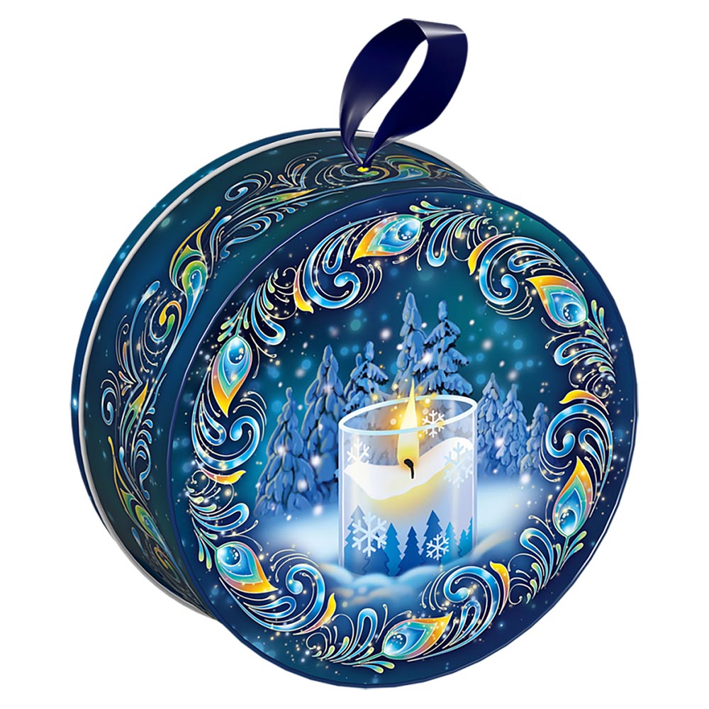 Подарок со сладостями на Новый год в жестяной упаковке Жемчужина 600г Люкс.